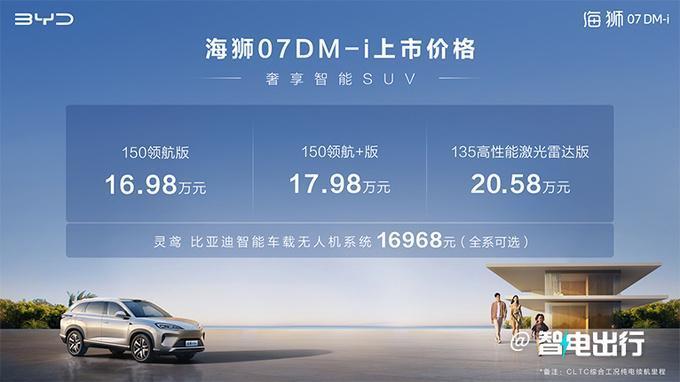 除了价格给力,海狮07 DM-i的配置也是直接拉满,全系换上了第五代DM技术,最高纯电续航150km,满油满电综合续航最高1320km。